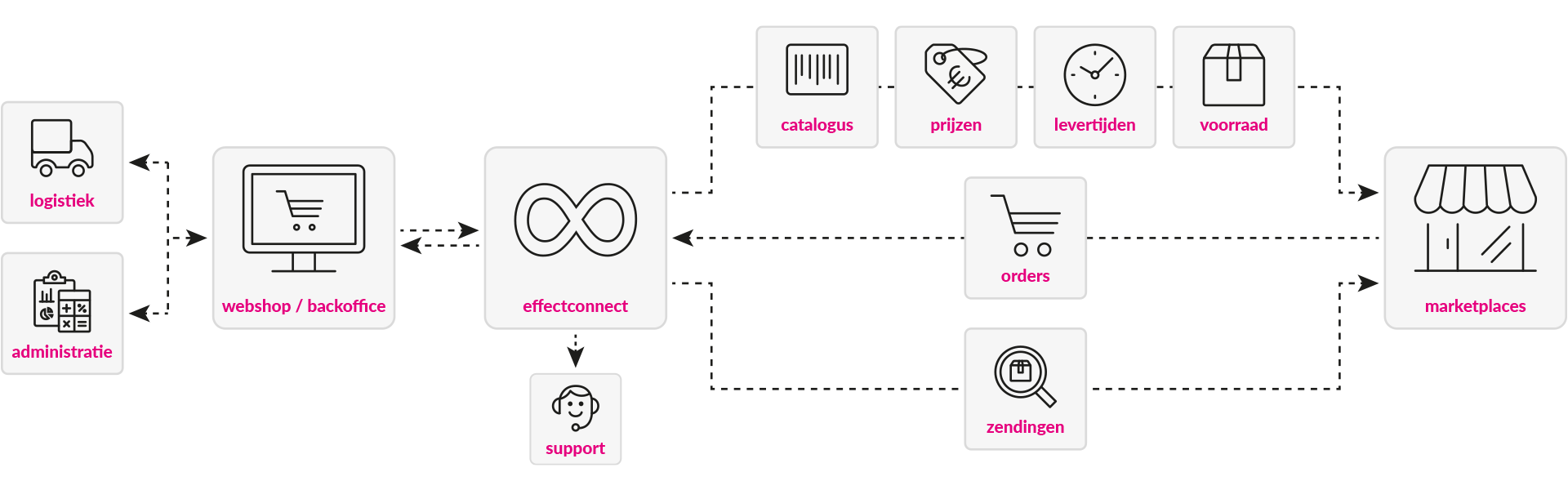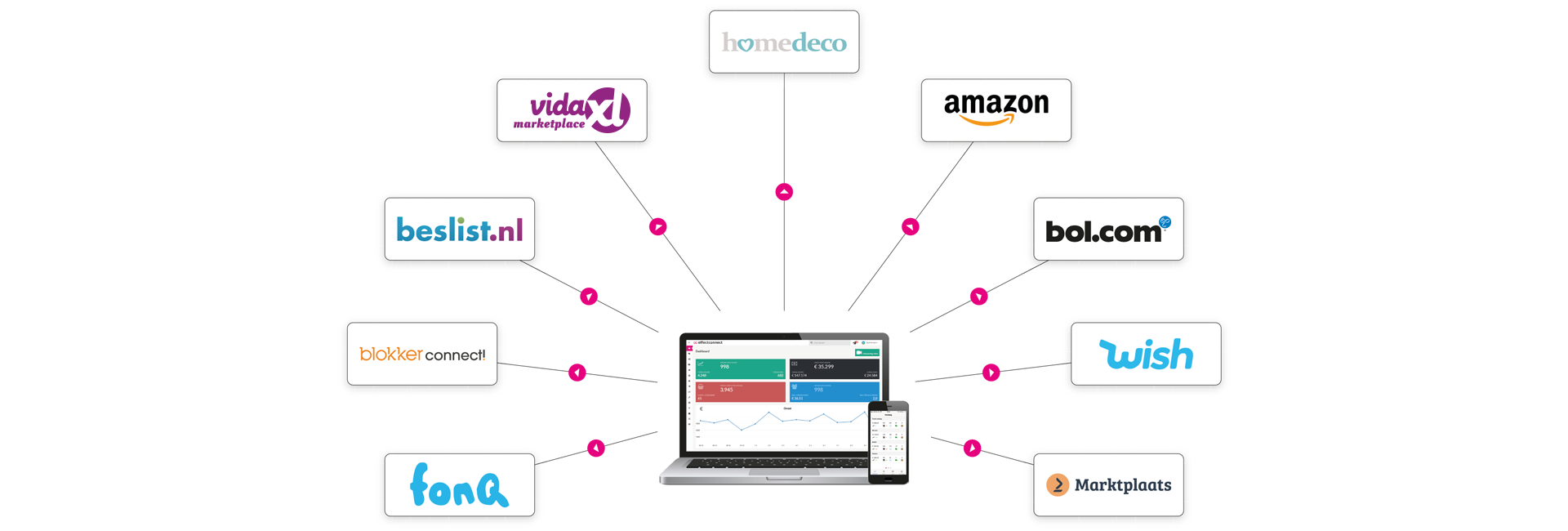 In het begin kun je de verkopen via marketplaces nog goed bijhouden in het klantportaal van de marketplace. Hier kun je alle producten uploaden en variabelen aanpassen. Maar naarmate je verkopen toenemen of je via meerdere marketplaces wilt gaan verkopen, zul je merken dat het een behoorlijke hoeveelheid tijd kost om dit allemaal bij te houden.