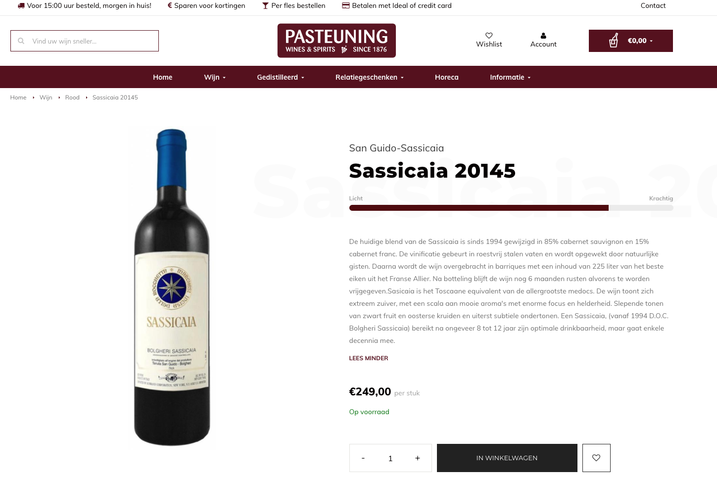 Wijnshop Pasteuning geeft beschrijvingen waarvan het water je in de mond loopt. De beschrijving hierboven geeft uitleg over het wijnproces, de smaak, de locatie en wanneer je de wijn het beste kunt drinken.