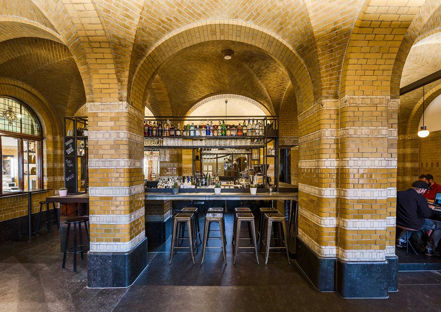 Waar je in deze buurt verder vooral wafelwinkels en rode ramen vindt, zit er op het Beursplein een verborgen parel. Deze plek straalt in alles karakter uit: van het karakteristieke metselwerk en authentieke glas in lood tot de getattoeerde mannen met goede verhalen die een killer Negroni voor je stirren. Extra leuk: ze hebben net een gloednieuw terras geopend!