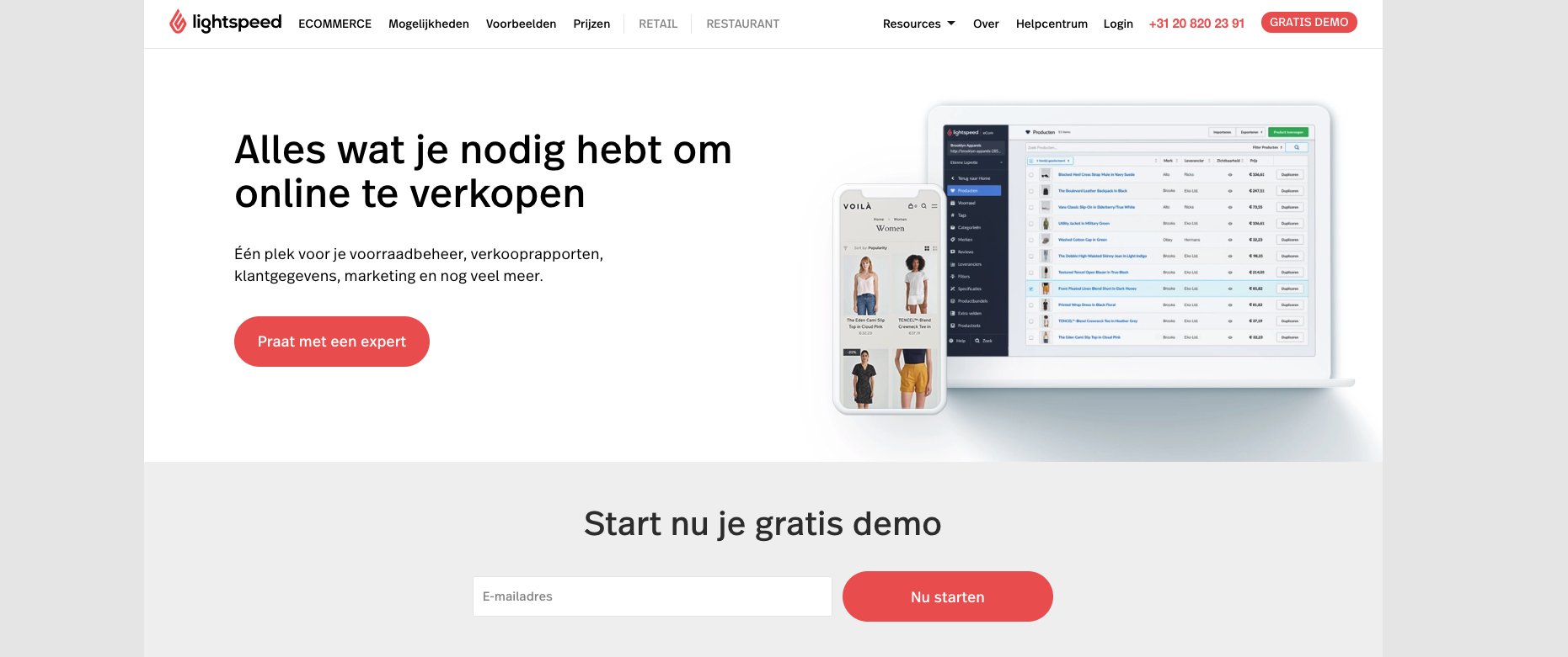 Lightspeed voorbeeld: het doel is om je te informeren over de mogelijkheden van Lightspeed eCommerce.