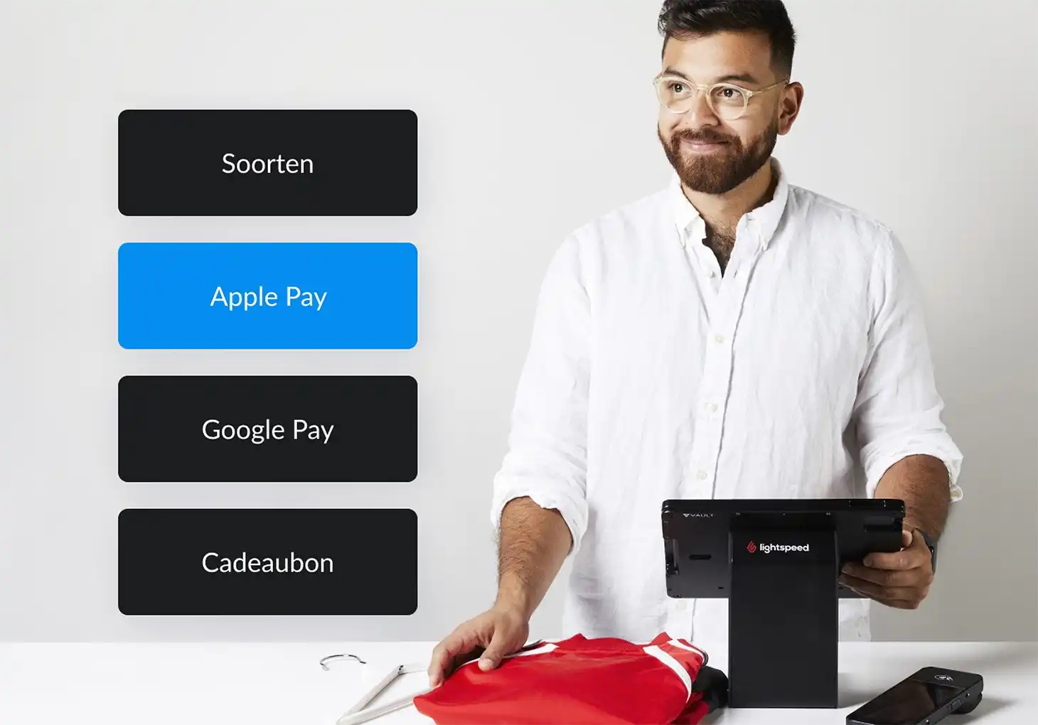Accepteer betalingen waar je ook bent met Lightspeed eCom: op beurzen, lokale markten of waar je klanten zich bevinden. Neem moeiteloos zowel contante als mobiele betalingen aan.