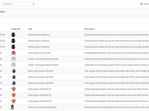 - Genereer datafeeds voor vergelijkingssites, affiliate netwerken en marktplaatsen