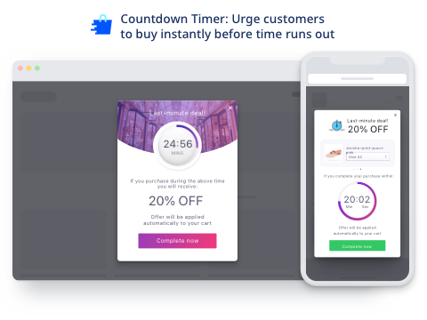 - Exit intent technologie zorgt er voor dat klanten een aantrekkelijk aanbod getoond krijgen via een pop up wanneer zij op het punt staan om jouw webshop te verlaten