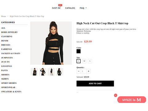 Het enige dat u hoeft te doen is de MySizeID-app toevoegen aan uw productpagina's en ons uw maattabellen toesturen. Uw klanten zal worden gevraagd de MySizeID-mobiele app te downloaden, welke hen door een snel meetproces zal leiden. MySizeID maakt geen gebruik van de camera van uw mobiele telefoon om maten in te schatten gebaseerd op afbeeldingen, dus er is geen sprake van inbreuk op uw privacy. Door de maattabellen van uw inventaris te vergelijken met de afmetingen van de klanten, toont de app de juiste maat voor het geselecteerde item en voor elk item dat de klant later nog zal bekijken. Zolang u MySizeID op al uw productpagina's heeft geïnstalleerd, kunnen klanten die de app gebruiken de voor hen voorgestelde maten zien, waar ze dan ook rondkijken in uw winkel.