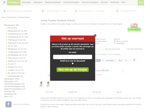 Indien een product niet op voorraad is krijgt de klant een mogelijkheid om zijn email adres achter te laten. Blijf klanten op de hoogte houden en verhoog uw conversie.