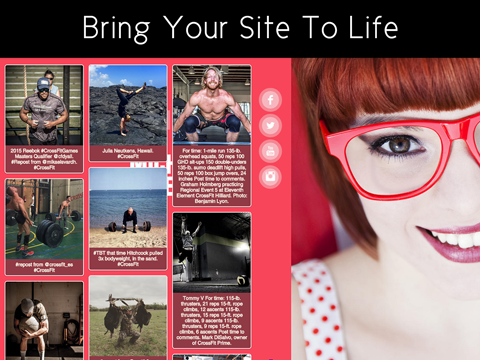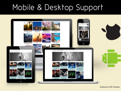 - Toon uw berichten van Facebook, Twitter, Instagram, Youtube, Pinterest en Tumblr in een geweldige social widget