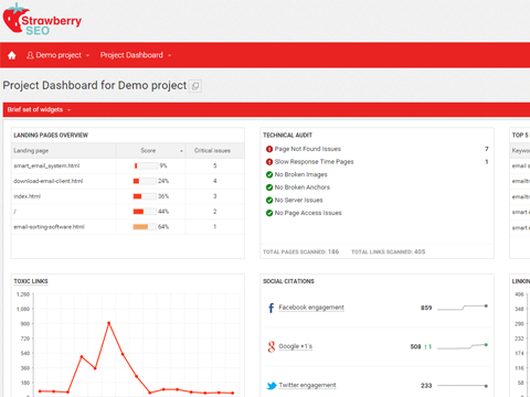 Strawberry SEO is voorzien van de laatste en meest geavanceerde technieken op het gebied van zoekmachineoptimalisatie om SEO-management zo prettig mogelijk te maken. Met een gebruikersvriendelijke en meest complete interface die volledig in de Cloud staat.