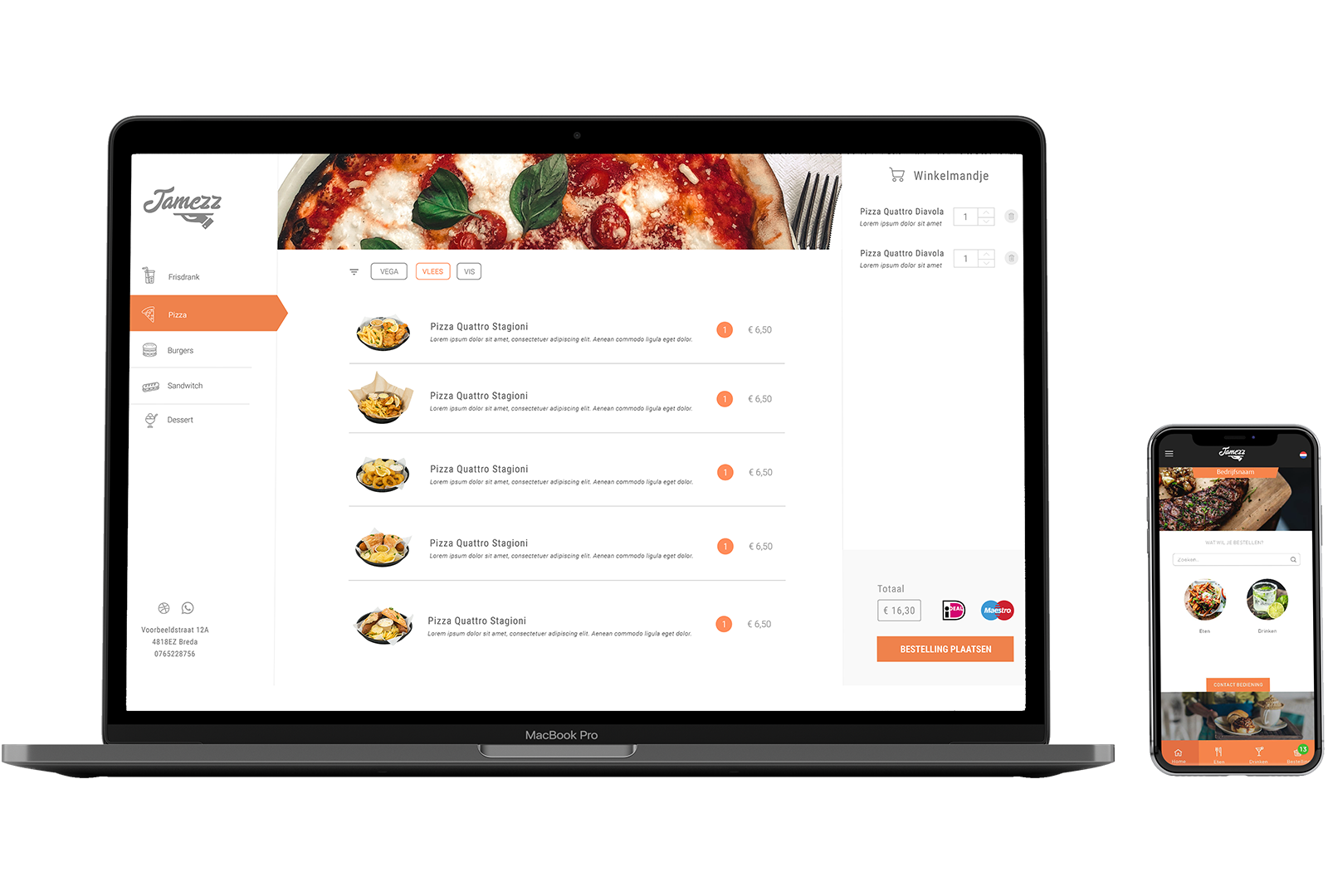Jamezz is a software platform for self-ordering with an extremely wide range of functions and features. It can be used on many different devices and does not need any installation or download. Jamezz is completely integrated with your cash register and menus and products can be fully managed from your Lightspeed POS System. Jamezz can be seen a as complete digital extension for your business. Next to the QR-application, Jamezz can also provide you with a self-ordering kiosk, tablets, or your own webshop for pickup and delivery. You can easily manage all these products right from your Lightspeed System or within the Jamezz Backoffice!