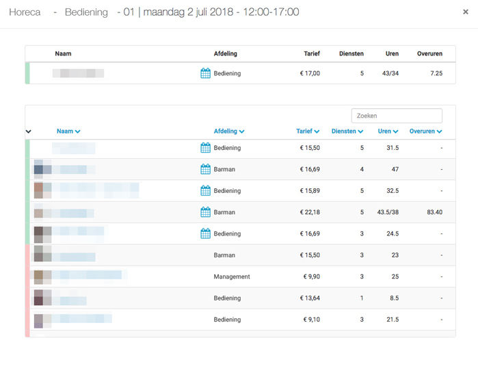 Dé optimale personeelsplanning maak je door de perfecte afstemming van de verwachte drukte en het aantal beschikbare medewerkers. Het resultaat: geen onverwacht tegenvallende loonkosten en tevreden gasten. Geen administratieve fouten meer, want de digitale urenregistratie is gekoppeld aan het verloningspakket. Bij jou werken? Dat is efficiënt en sociaal. Want medewerkers kunnen snel schakelen, met jou en met elkaar. Bovendien weten ze waar ze aan toe zijn. De personeelsapp geeft ze direct inzicht in het rooster, gewerkte uren en resterende vakantiedagen. Het personeelsplan van Nostradamus maakt het allemaal mogelijk.