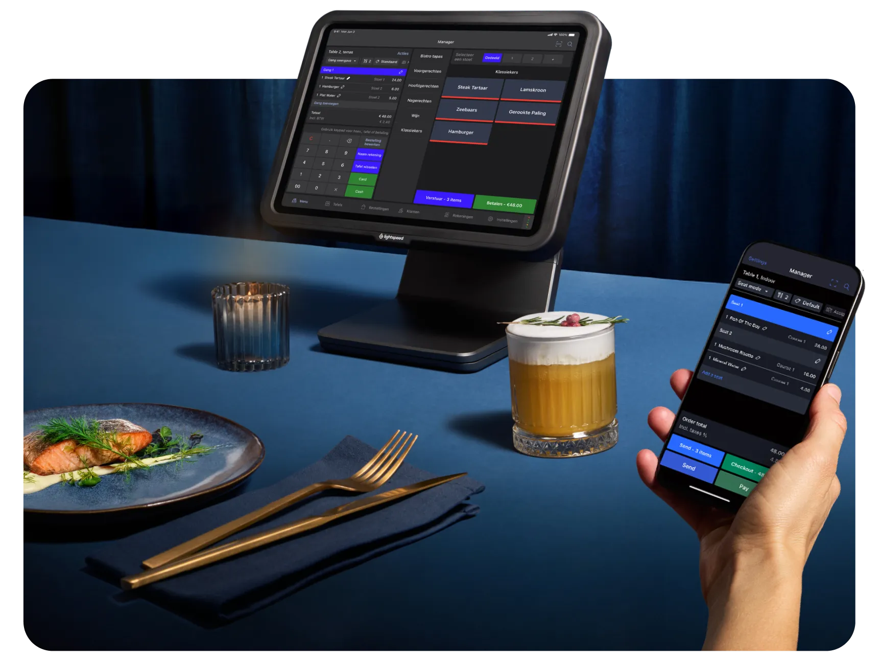- Neem bestellingen op en reken direct af aan aan tafel voor een snellere service.